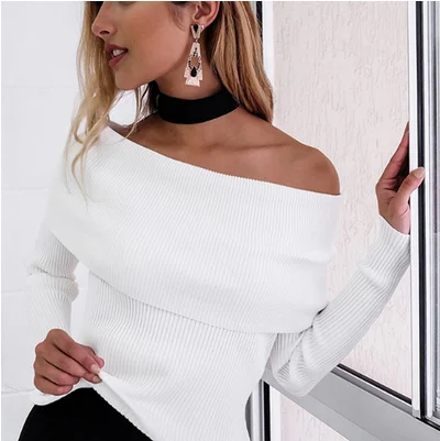 2018 Осенняя Новая женская сексуальная рубашка без бретелек с длинными рукавами трикотажный топ