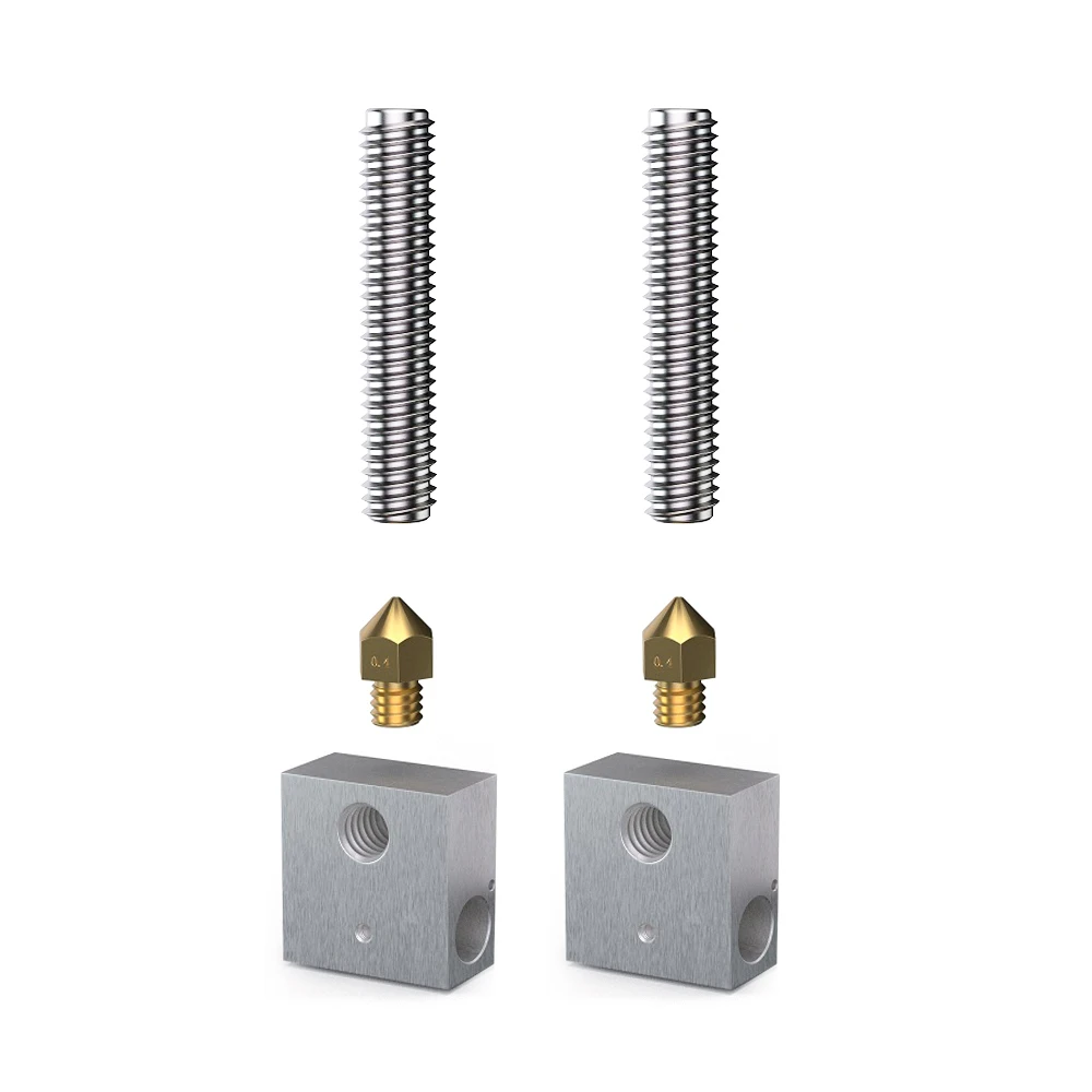 Комплект аксессуаров поставляется с 5 * экструдерами сопла + 5 * нагревательными блоками + 5 * трубками для горла, достаточно для использования.