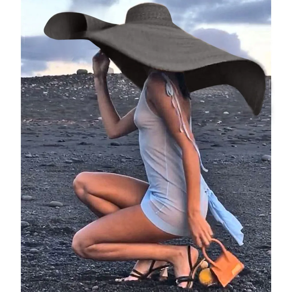 Модная большая шляпа от солнца с широкими полями, Пляжная Защита от УФ-лучей, Складная крышка