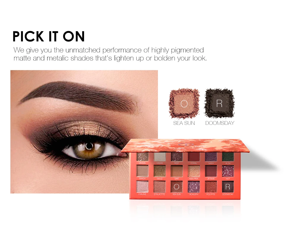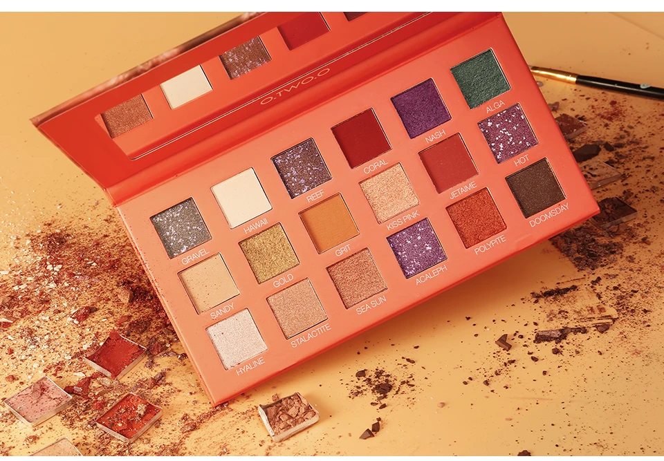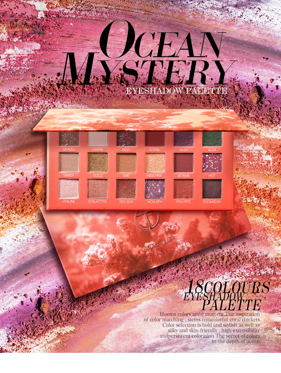 O.TWO.O палитра теней для век Океанский мистический дизайн Вдохновленный коралловым мире в глубоком море палитра теней для век «Все в одном» состоит из 18 высокопигментированных оттенков, начиная от лестных маттов и кончая залитыми мерцанием оттенками, и имеет все, что вам нужно, чтобы преобразить ваши крышки. Тонкая пудра и очаровательные тени и кремовые тени содержит три различных текстуры гладкой пудры, мягкой кремовой, гладкой матовой стильной цветовой гаммы от матового шампанского до мягкого ягодного, и красного фиолетового до зеленого тонов.