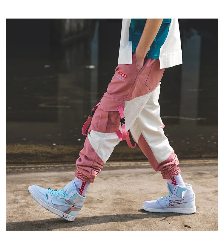 Мужской ремень для верхней одежды брюки карго цветной блок 2019 хип хоп комбинезоны мужские модные спортивные брюки трико для мужчин брюки повседневные брюки мужские