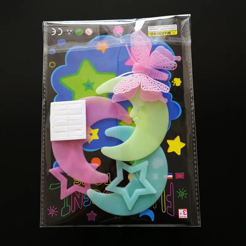 Трехмерные светящиеся звезды, солнце, бабочки, луна
