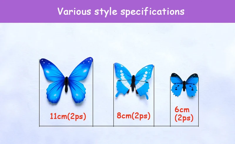 Характеристики: 100% новые и высококачественные. Материал: ПВХ Цвет: Цветной Размеры: 2 шт. х 11 см, 2 шт. x 8 см, 8 шт. x 6 см Один набор из 12 3D наклеек-бабочек, Смешанная упаковка, идеальный дизайн. Бабочки поставляются с магнитом и двухсторонней клейкой лентой, простой в использовании Поставляется с двусторонней клейкой лентой в корпусе бабочки, может быть нанесен на все гладкие поверхности, такие как стены, двери, шкафы, пластик, металл, холодильники, ноутбуки, телевизор, автомобили и так далее Это идеальный подарок для любых особых случаев, таких как Рождество, свадьба, день рождения, годовщина, помолвка, новый ребенок, 18-21, выпускной, выход на работу или просто знак любви Посылка включает в себя 12 шт.