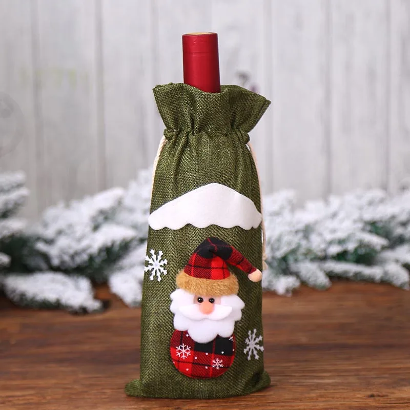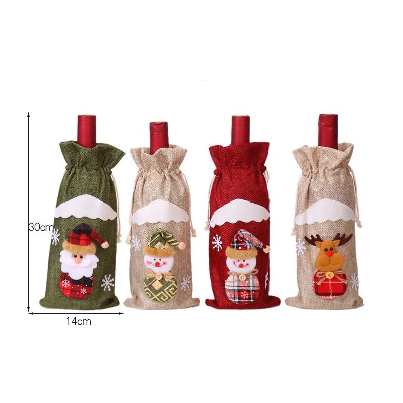 Близнецы вечерние Санта Клаус Снеговик Олень крышка бутылки стол мешок вина Ресторан праздничное платье на новый год Рождество ужин вечеринка