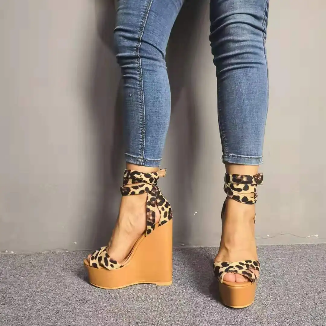 Оригинальные стильные женские босоножки на платформе; Босоножки на танкетке с перекрестной шнуровкой; Высококачественная пикантная обувь леопардовой расцветки для женщин; Большие размеры 4-15; Пожалуйста, ознакомьтесь с нашей информацией о размерах при выборе размера.