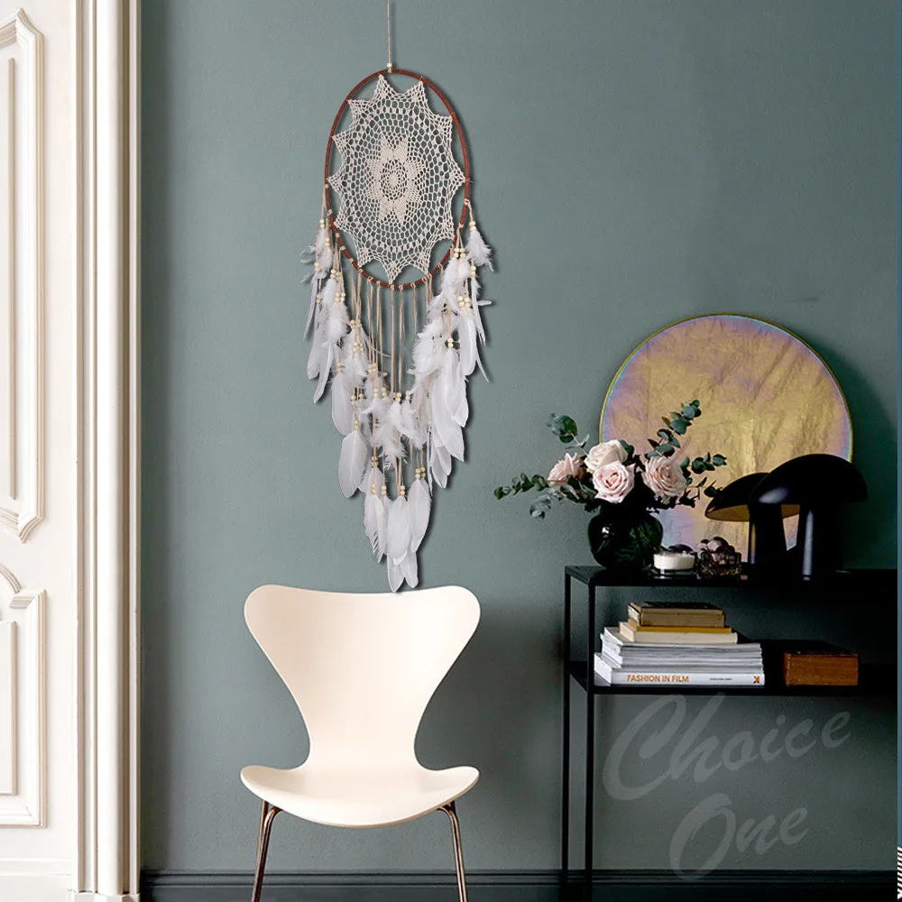 Всего около 55 см в длину, включая подвесную веревку Ловца снов-кошмар проходит через отверстия и выходит из окна; хорошие мечты оказались в ловушке в Интернете, сползая перья спящему человеку.