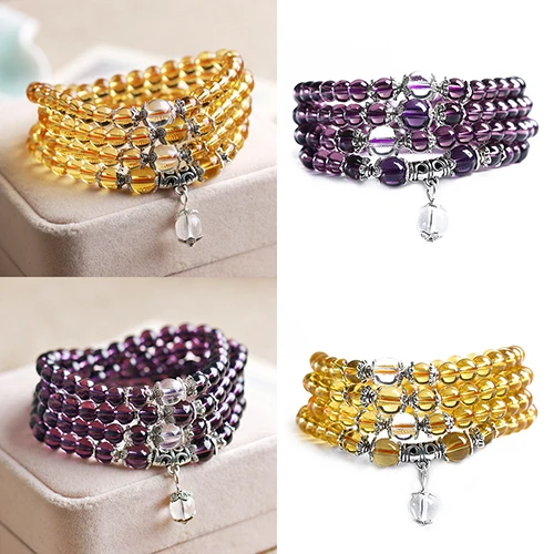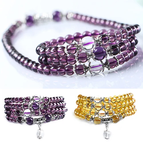 Этнический стиль женский 6 мм Кристалл Камень буддийский Аметист 108 бусины для молитвы Мала Браслет Ожерелье Новинка для женщин