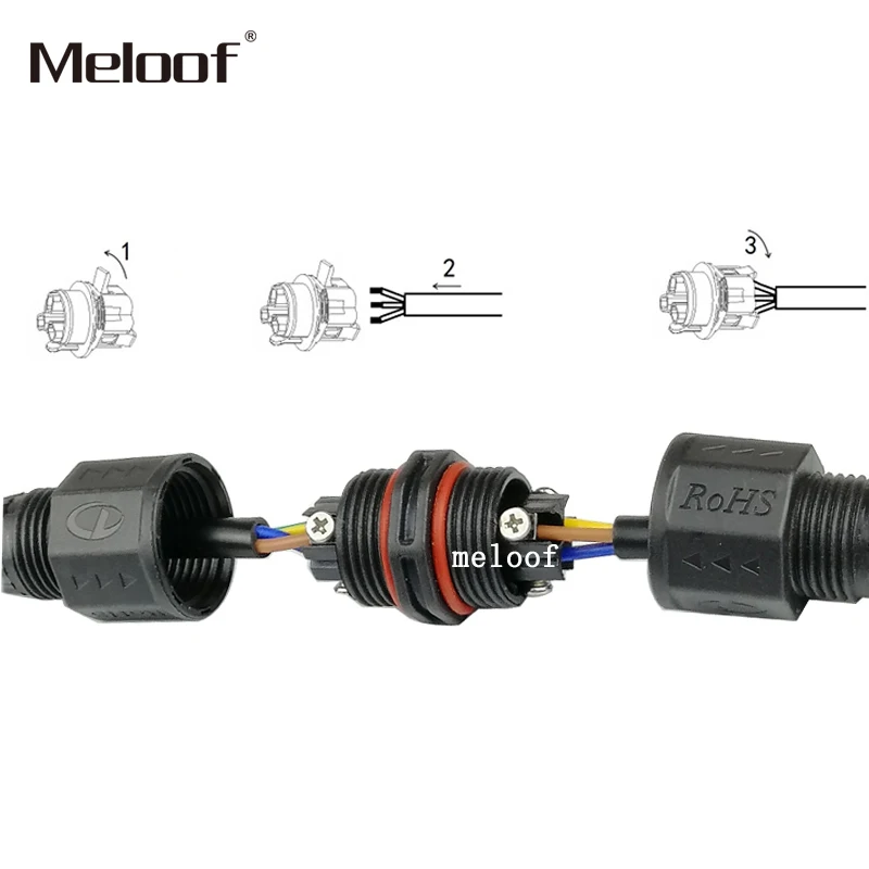 Технические характеристики: Название продукта: водонепроницаемый разъем Сердечники кабеля: 2 ядра, 3 ядра. Протектор уровень: IP68 Адаптируется к температуре: -30 °C ~ 100 °C Температура хранения: -45 °C ~ 185 °C Относительная влажность: ≤ 90% Подходит для диаметра проволоки: от 4 до 10 мм 2 ядра Рекомендуемые провода: 0,5-0,75-1,0-1,5-2,5-квадратный миллиметр 3 ядерный, 4 ядерный провода рекомендуем: 0,5-0,75-1,0-1,5 квадратный миллиметр Материал: PA / PC Тип соединителя кабеля: фиксированный винт Черный цвет Широко используется в системе солнечных панелей, уличный светодиодный светильник и провод электрического подключения Посылка включает в себя: 1 x Водонепроницаемый разъем