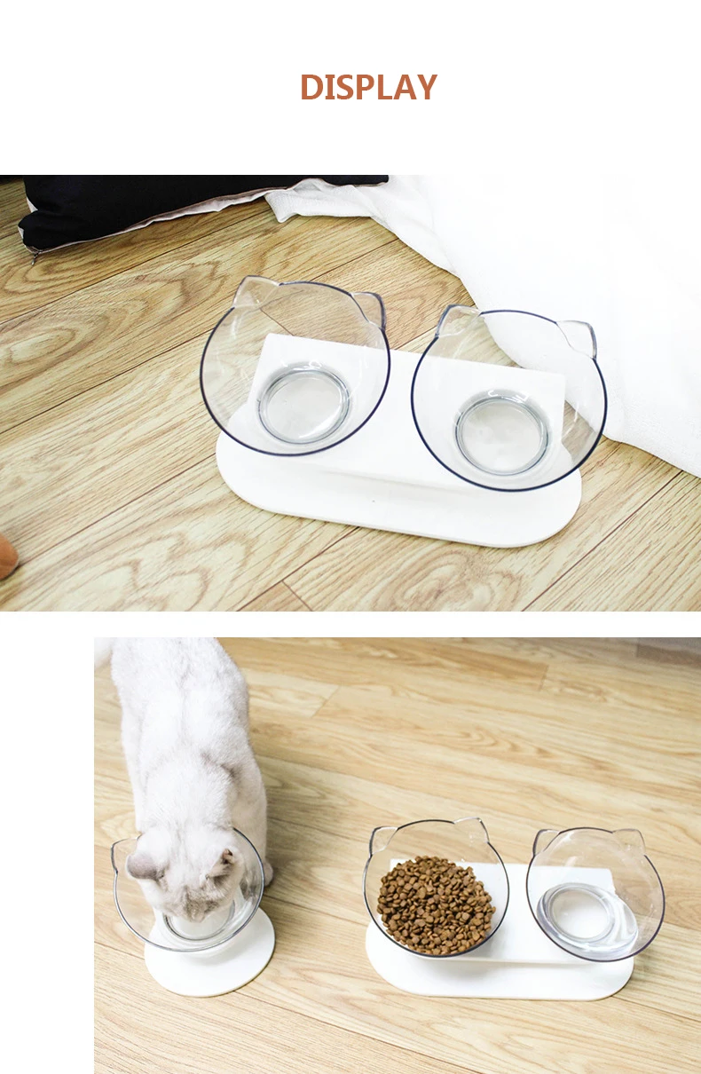 Crystal clear pet food bowl keeps the dishes securely in place and prevents the bowls from clanging or leaking through and puddling on the floor below and aging and injured or taller dogs and cats can eat without pain