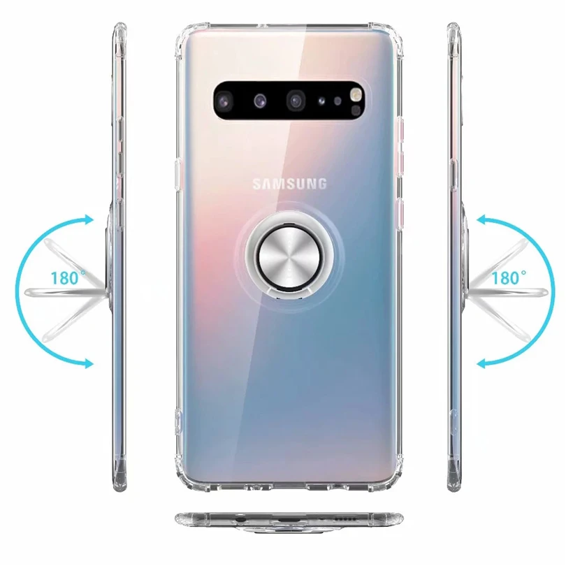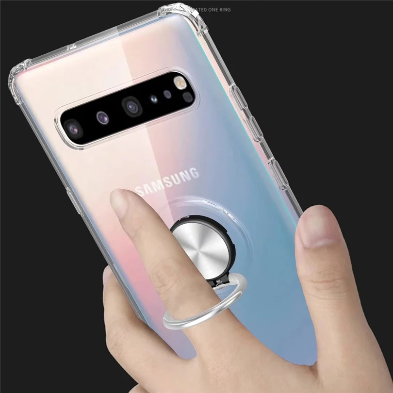 Automatic Pop up Phone Case For Samsung Galaxy S10 5G Plus S10 S10E Cover With Bombable Ring Clear Slim Rubber Skin