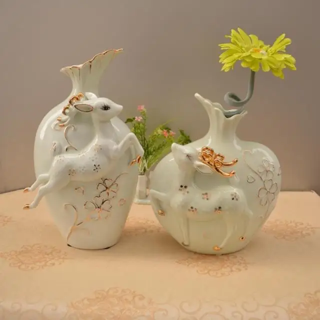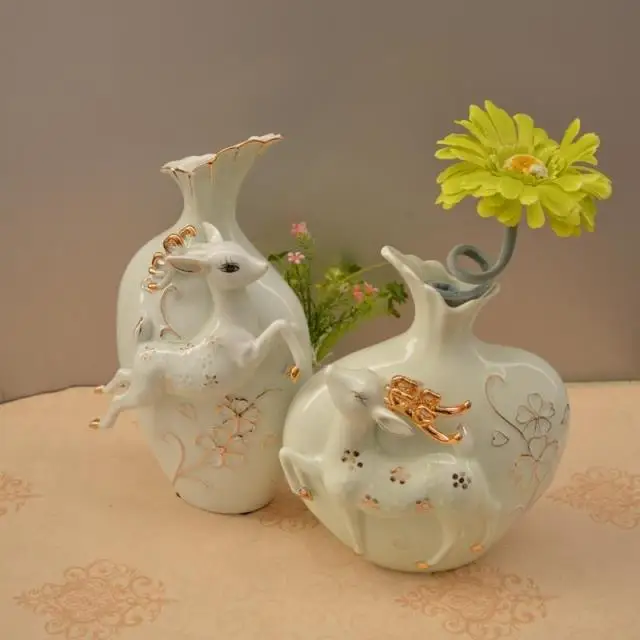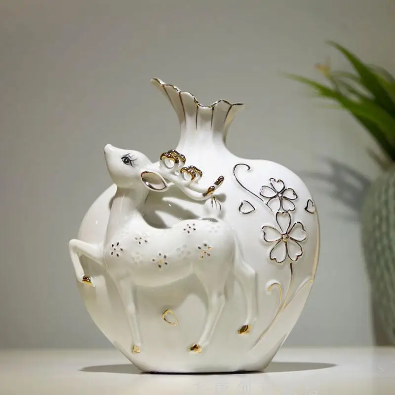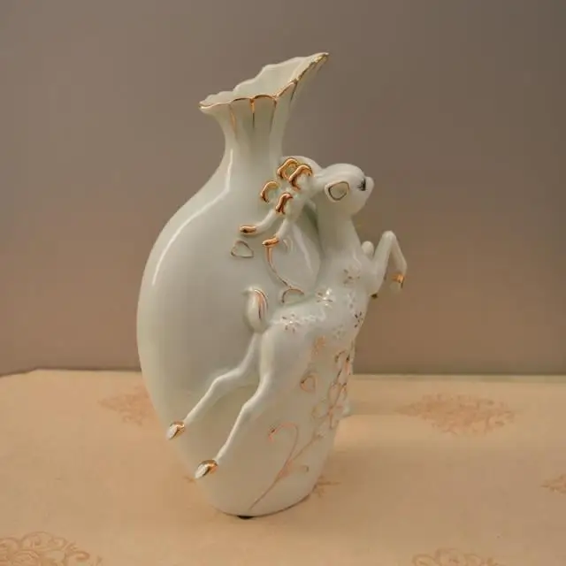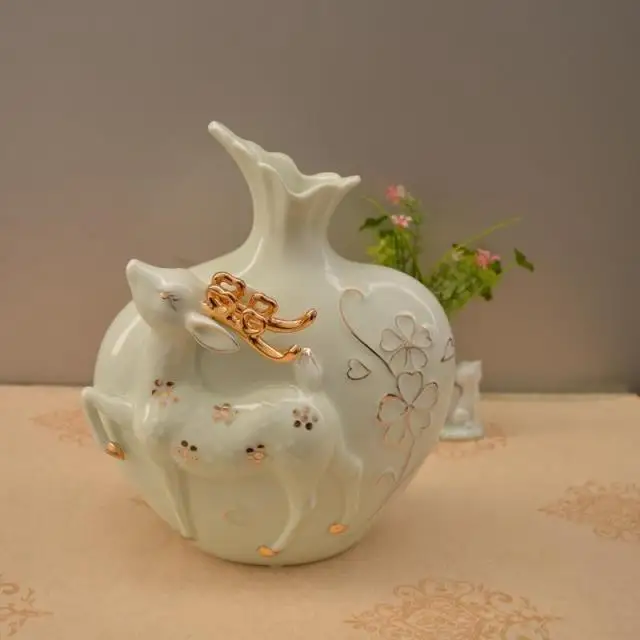 Керамическое ремесло ювелирных изделий Селадон Описание Золотой любовник олень ваза расположение двойного назначения