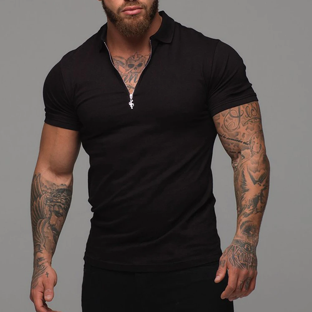 Модные мужские облегающие футболки с коротким рукавом, Повседневные Дышащие однотонные Топы