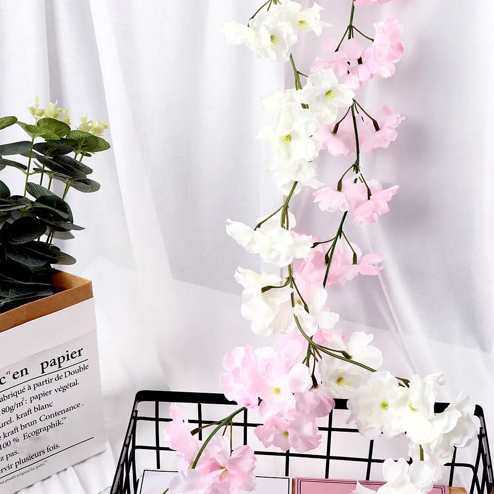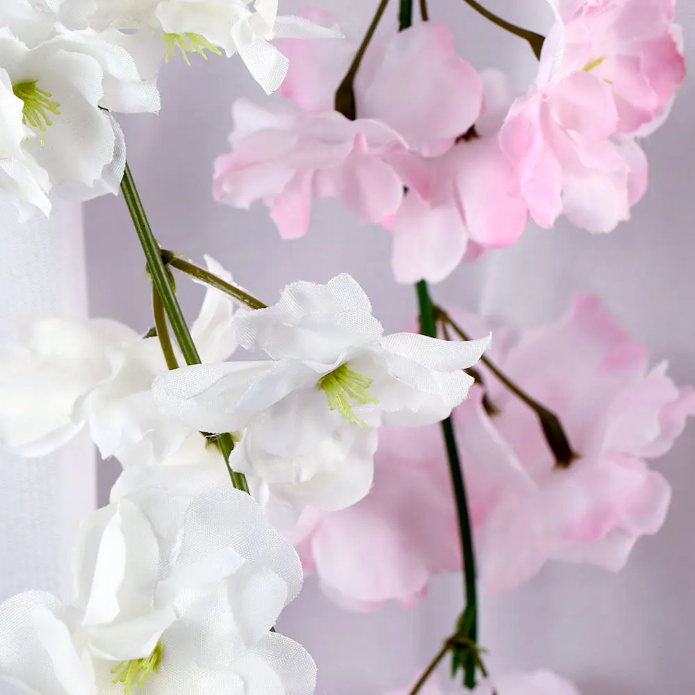 Материал: шелк и пластик Общая длина: 200 см Цвет: розовый, белый Искусственные вишневые цветы, хорошо сделанные и яркие, выглядят как настоящие. Цветы изготовлены из высококачественного шелка и легко чистятся. Упаковка включает: 1 * цветок ротанга
