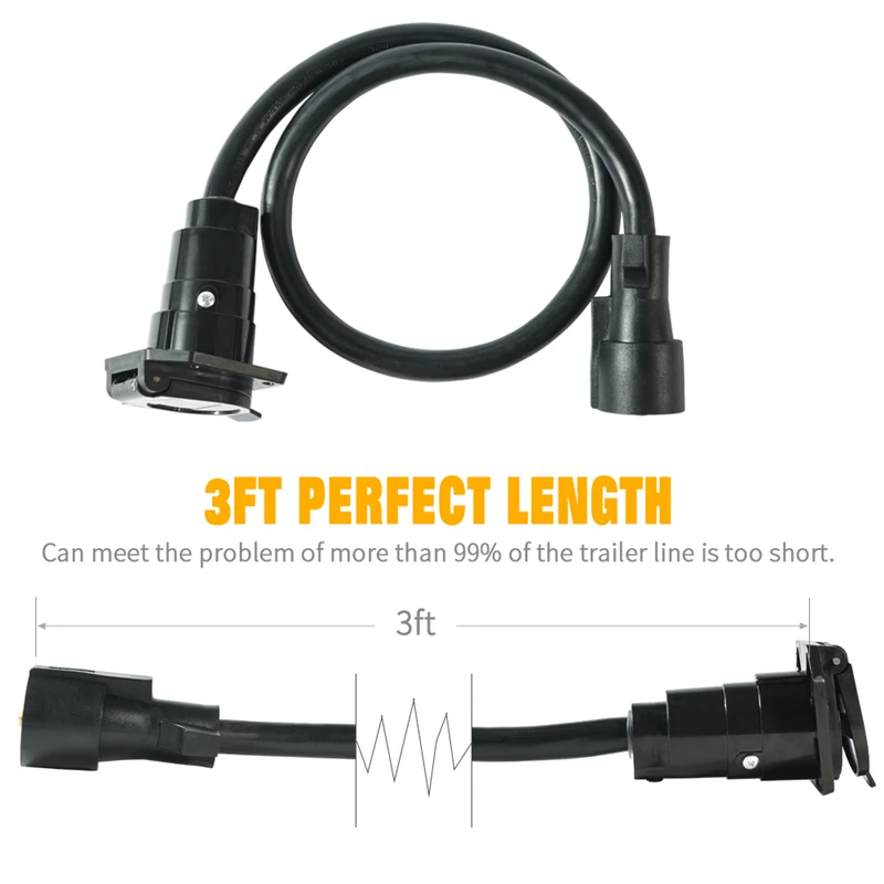 MICTUNING 7-Way 3 фута Удлинительный кабель для прицепа разъем для проводки Шнур Универсальный высокое качество Аксессуары для автомобилей RV грузовик фургон лодки