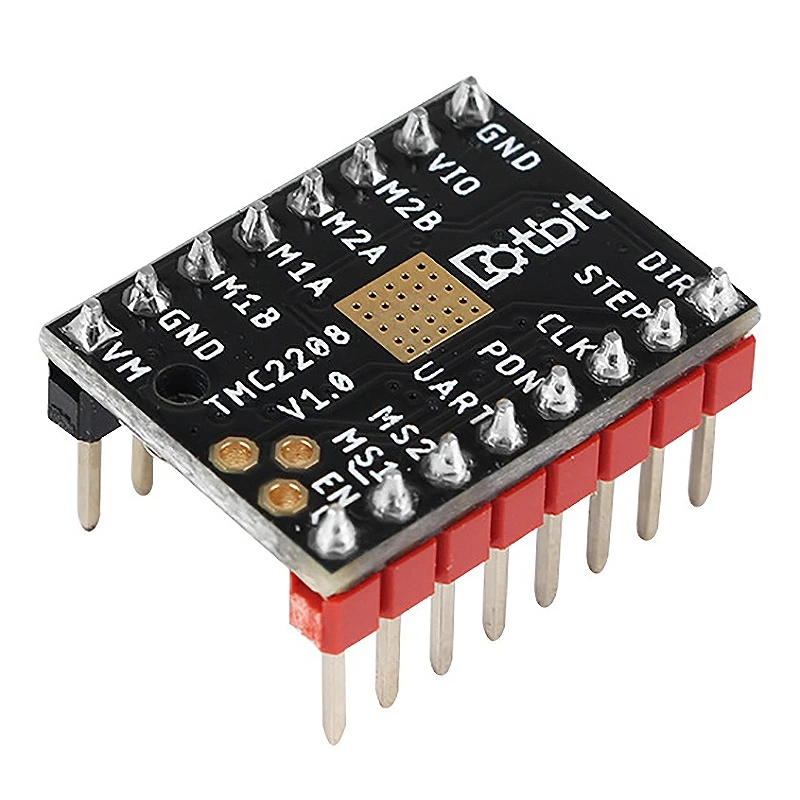 TMC2208-это ультра-тихий двухфазный шаговый двигатель, непрерывный ток привода 1,4a, пиковый ток 2А, диапазон напряжения 4,75-36 в, 256 дивизион.