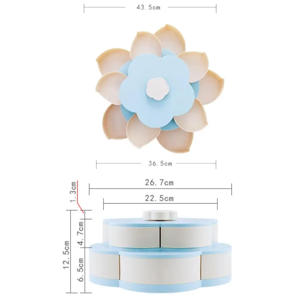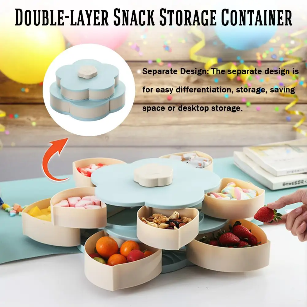 2. Большая емкость: двухслойный разработанный дизайн контейнера имеет в общей сложности 10 лепестков разделения, что делает контейнер вмещает различные закуски. Такие как сухофрукты, орехи, конфеты, семена дыни и многое другое. Он также может вместить другие предметы.