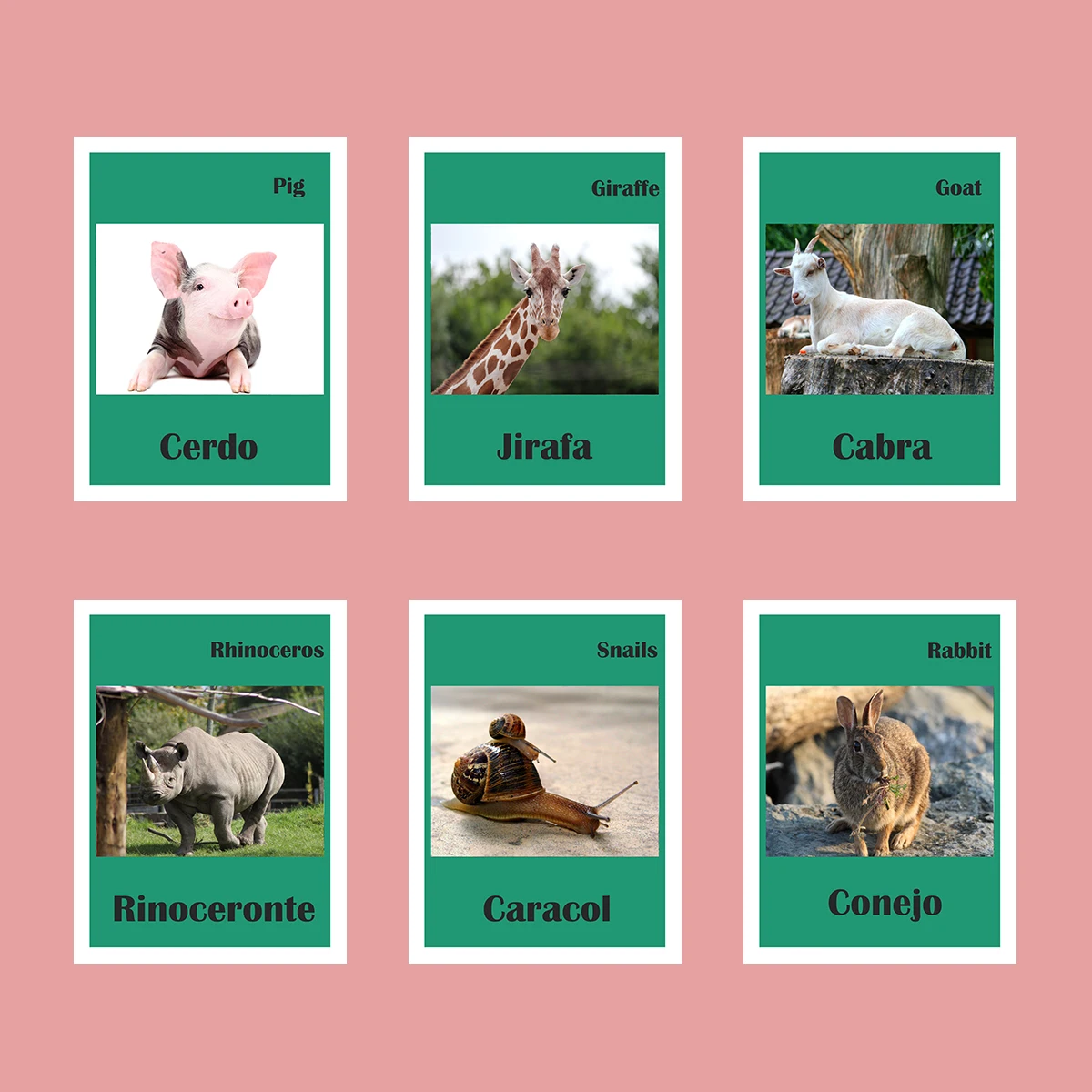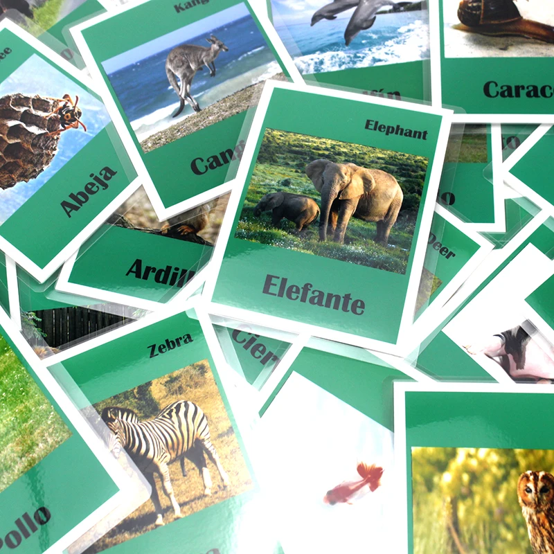 Детские Обучающие испанские/английские карточки с животными для детей Монтессори, Обучающие испанские детские игрушки, школьные Обучающие карточные игры
