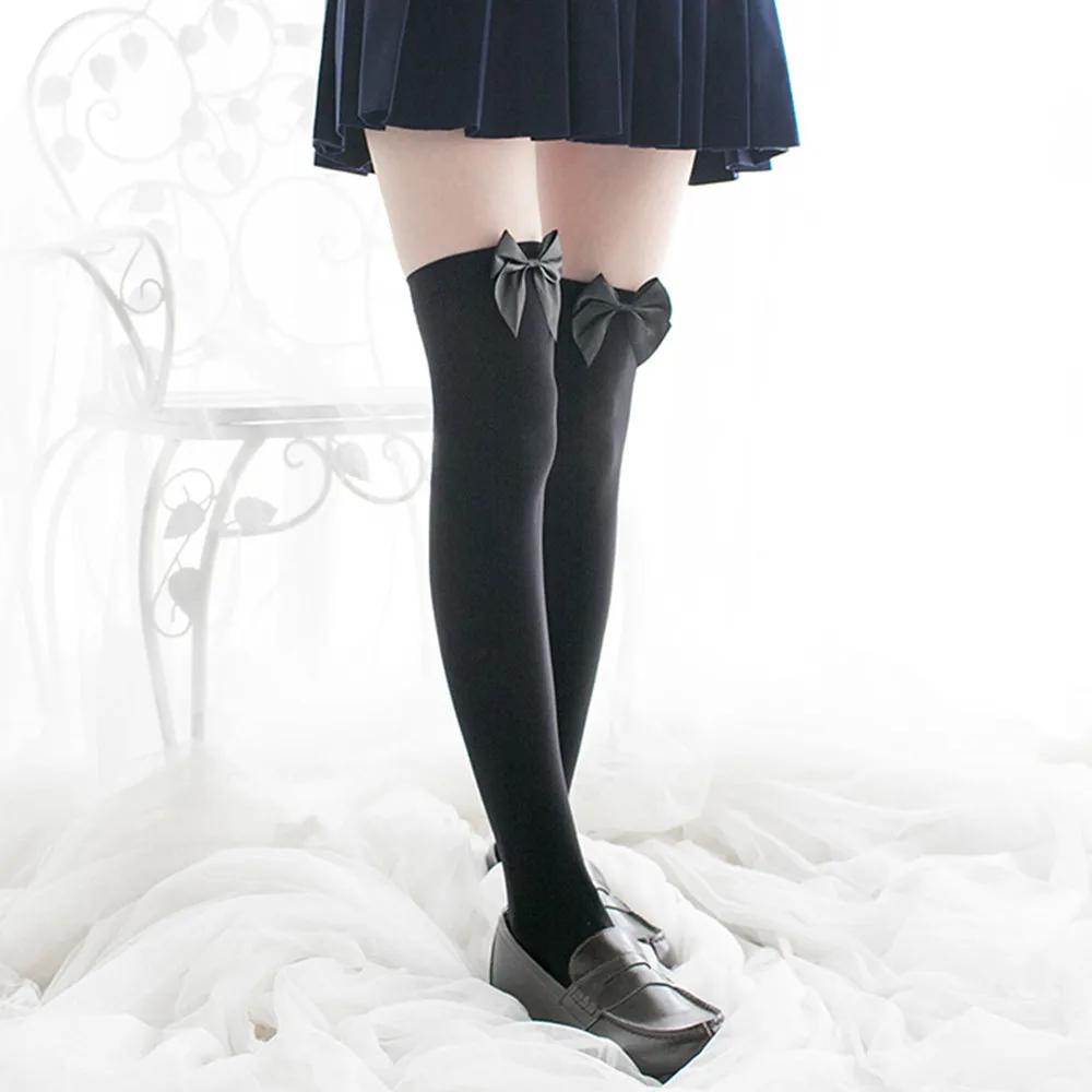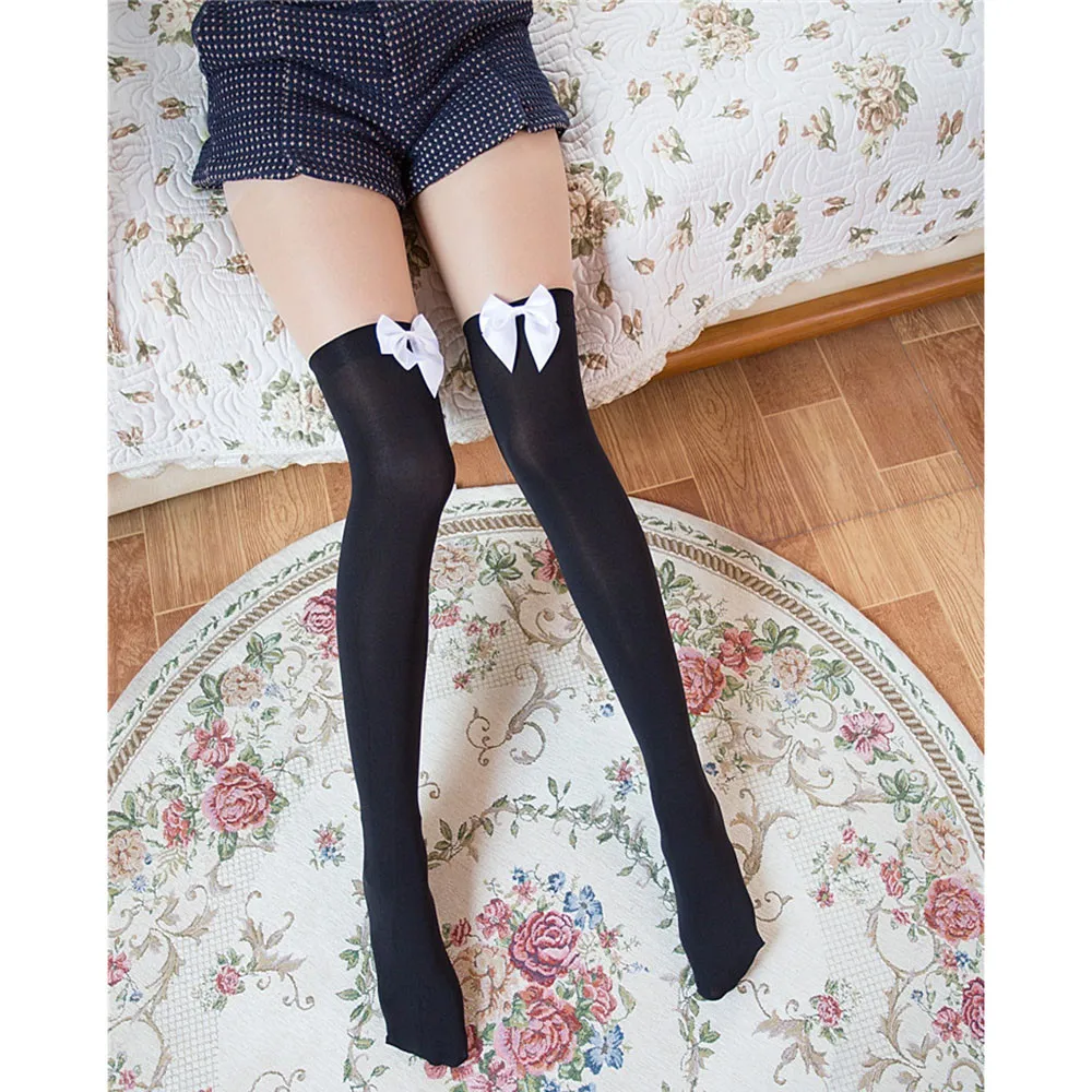 Чулки с бантом; Женские бархатные чулки выше колена; Цвет белый, черный; Женские чулки в студенческом стиле; Calcetines Mujer; Милые пикантные чулки