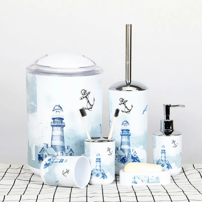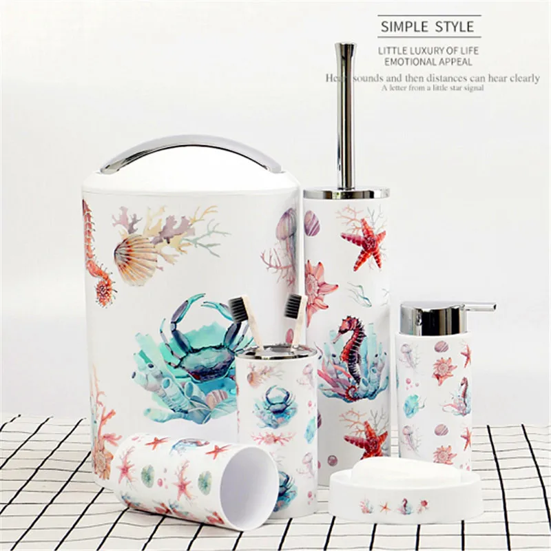 Набор для ванной из 6 предметов, высококачественный пластиковый материал,8 дизайнов