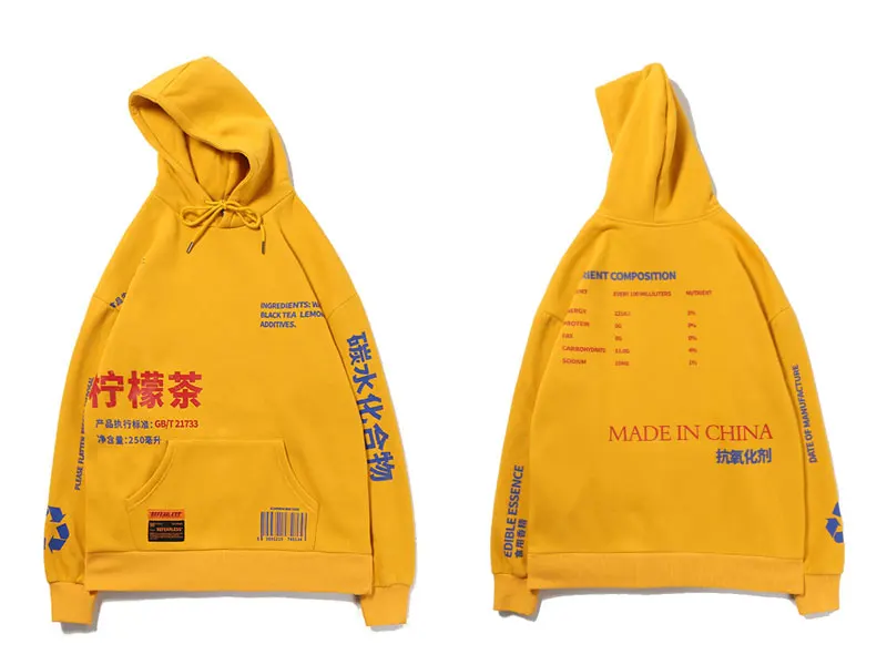 Lemon Tea/флисовый пуловер с принтом; Толстовки для мужчин и женщин; Повседневная Уличная одежда с капюшоном; Толстовки в стиле хип-хоп; Harajuku; Мужские брендовые Топы