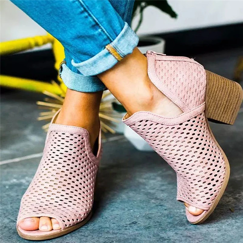 Женские ботинки; Модные кожаные ботинки в стиле ретро на низком каблуке с открытым носком; Женские нескользящие ботильоны в римском стиле; Bota Feminina Cano Curto