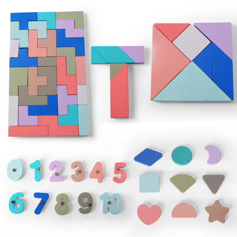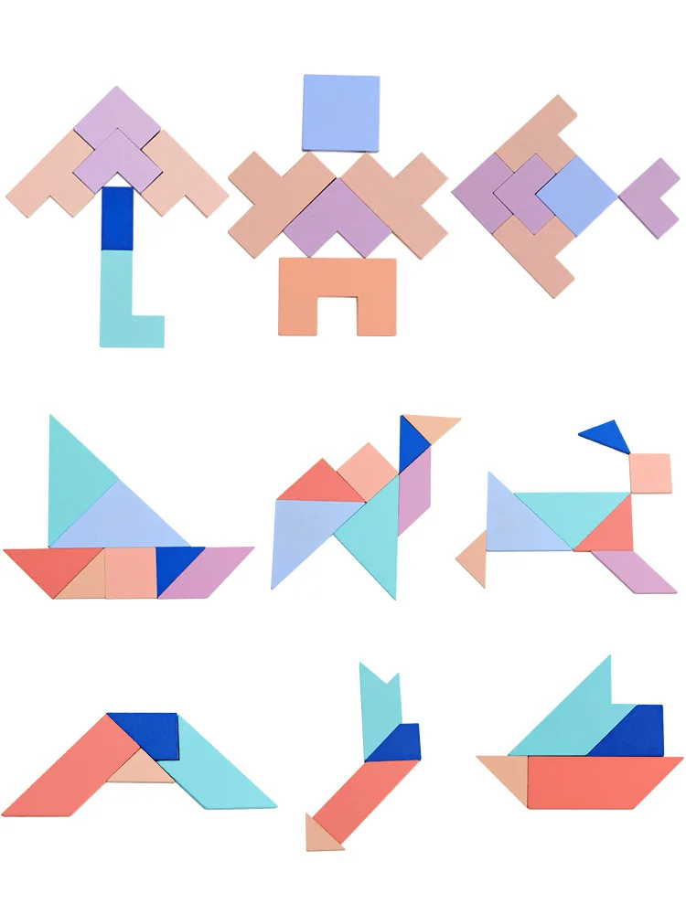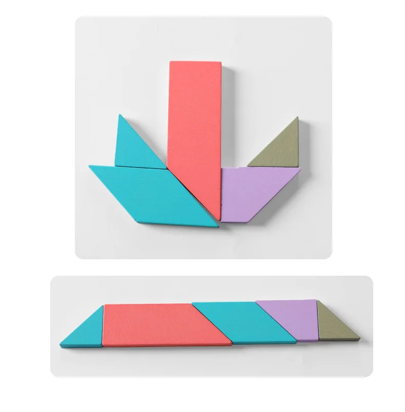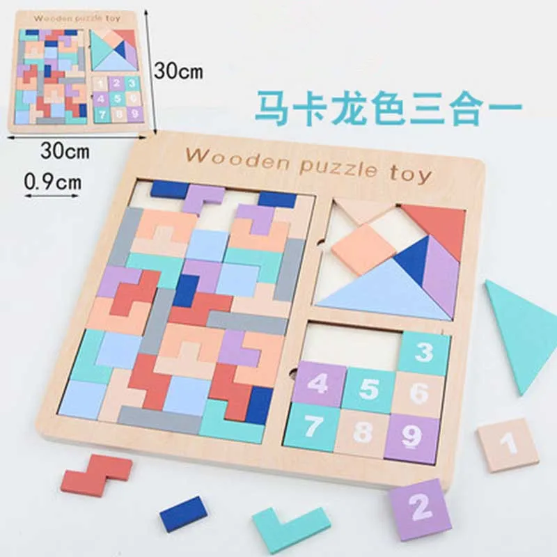 Название: макарон цвет различные головоломки игрушки Материал: деревянная фанера из бука В комплект входит: Пластик уплотнение Размер: 45*30*0,7 см Стандарт: GB66675-2014 1. Понимание номера 0-10/различные формы 2. «тетрис» 3. Т-головоломка 4. Магнитная рыболовная игра 5. Семисекционная головоломка; Танграм Китайская интеллектуальная игрушка, которая разрезает квадратный лист на пять треугольников, один квадрат и один косой прямоугольник и может быть собрана в различные формы.