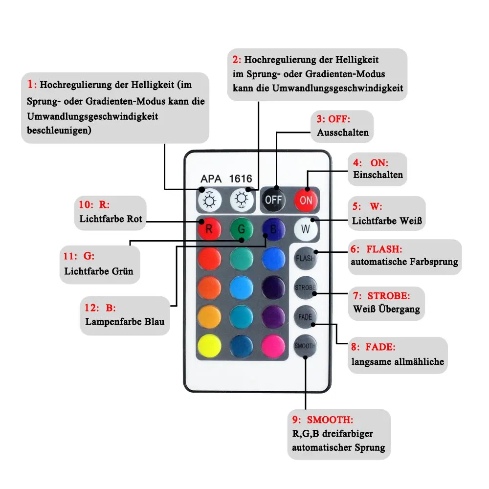 Specification Спецификация 】 этот Светодиодный точечный светильник на открытом воздухе супер яркий, с RGB подсветкой высокой мощности Светодиодный s, производит 1700 люмен сильный, 16 цветов 4 режима изменения цвета, беспроводной пульт дистанционного управления с функцией памяти, угол луча Светодиодный точечный светильник s 120 °, отличная производительность при всех условиях супер яркий светильник, Срок службы более 50,000 часов. 【Hohe quali tat】 Этот прожектор сделан из алюминиевого чехла и закаленного стекла. Из-за характеристик уплотнения алюминиевого корпуса (от-20 °C до + 50 °C), прочный износ и теплопроводность, высокая прочность, В то время как теплоотвод хорошо работает в солнечные дни в дождливую и холодную погоду! IP65 выдерживает жесткие погодные условия, является водонепроницаемым, пыленепроницаемым. Application диапазон применения 】g подходит для внутреннего и наружного освещения, для строительных фасадов, парковок, подземных проходов, гаражей, стадионов, общественных мест, сада, двора, виллы, парка, билборда, зонта, тренажерный зал, дорога, завод и т. Д., он может заменить галогенную лампу, Таким образом, ваш счет за электричество может быть сохранен до 80%.