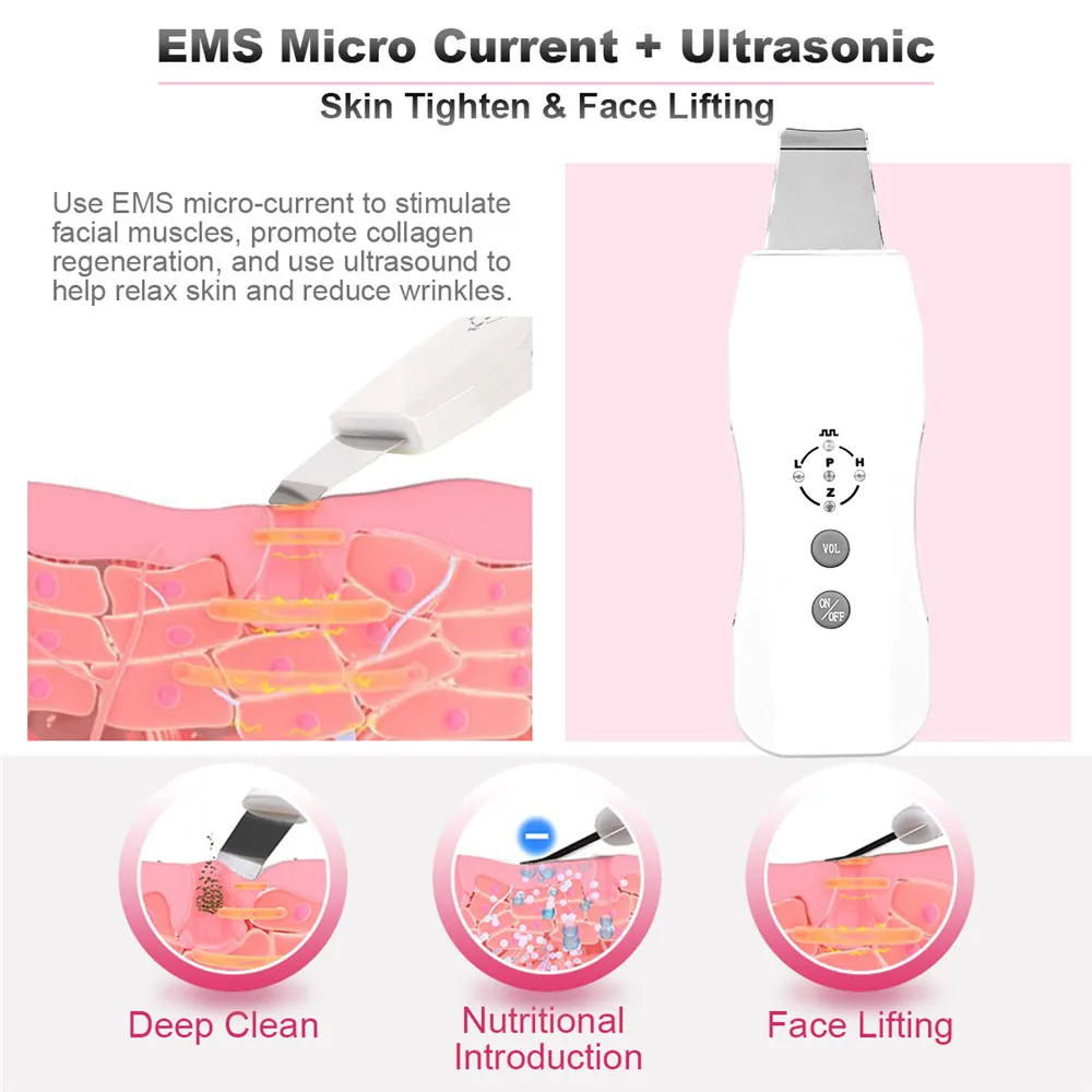 Этот ультразвуковой скруббер пилинг кожи машина массажер для лица использует 3 технологии, чтобы тщательно очистить кожу и идеально решить ваши проблемы с кожей.