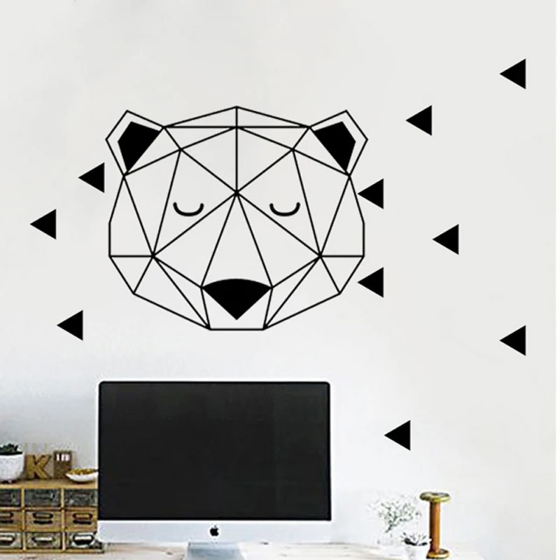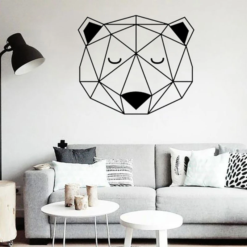 Милая Геометрическая голова медведя обои свежая гостиная спальня декоративная наклейка на стену