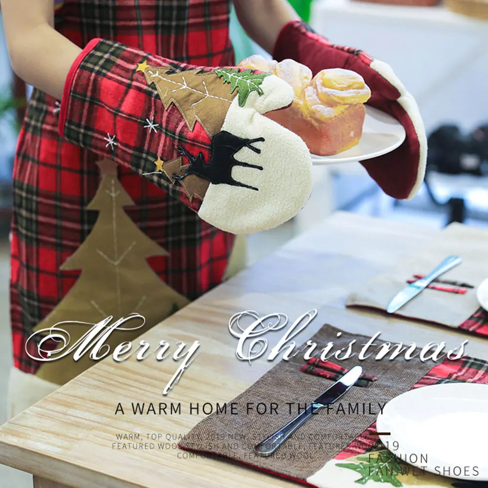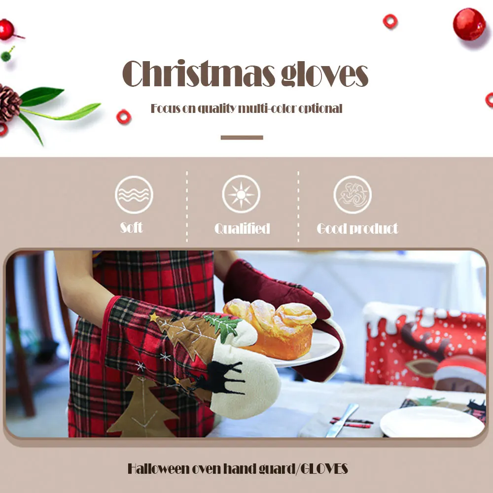 Рождественские Цветочные клетчатые перчатки для микроволновой печи термостойкие Нескользящие кухонные перчатки для готовки бытовой печи изоляционные перчатки 30