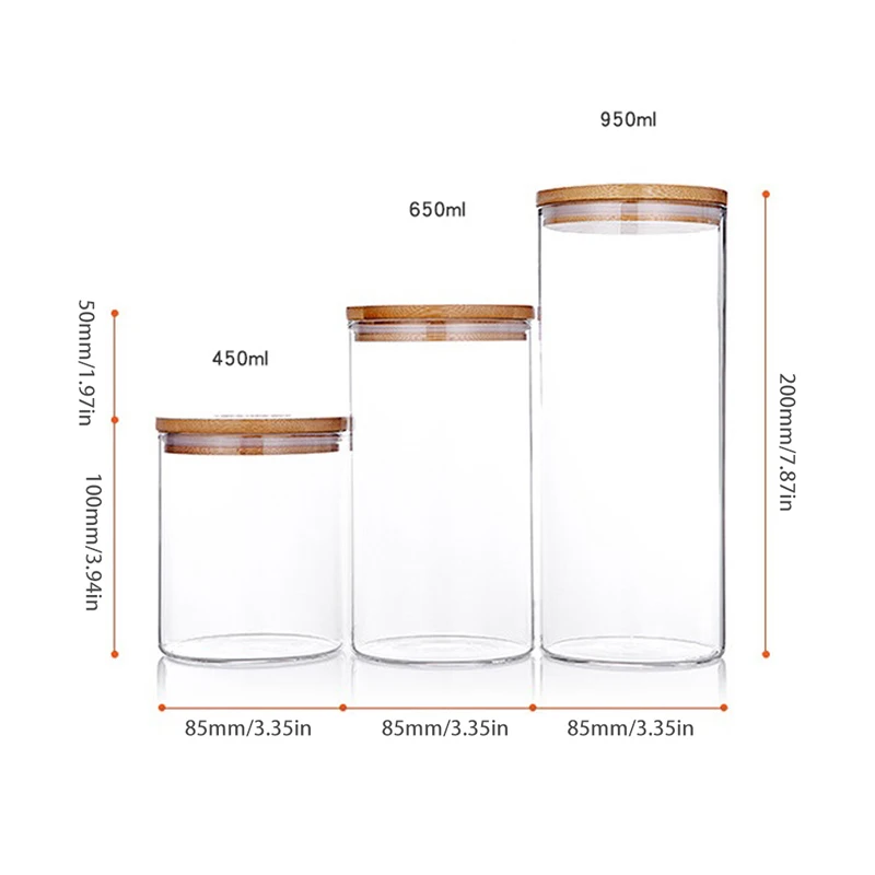 -Герметичные стеклянные банки разных размеров имеют одинаковый диаметр, они станут отличным украшением в вашем шкафу или на рабочем столе.