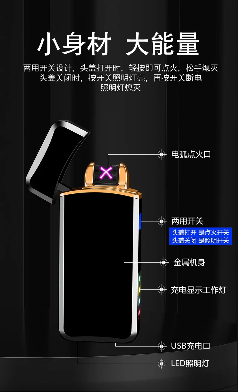 Светодиодный светильник электронная USB Зажигалка светильник er ветрозащитный беспламенный двойной дуговой сигаретный светильник er модные гаджеты аксессуары для курения плазменный светильник