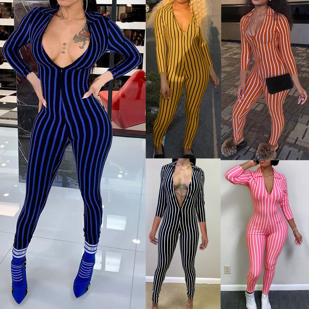 2019 Модные женские длинные рукава с v-образным вырезом в полоску с принтом на молнии, обтягивающие сексуальные комбинезоны Outono das Mulheres Rompers Mulheres Y Информация о продукте: Особенности: сексуальный боди, v-образный вырез, длинный рукав, молния, принт в полоску, сексуальный комбинезон, Облегающий комбинезон, осенний и весенний комбинезон. Материал: полиэстер, воздушный и легкий модный стиль, удобный на ощупь. Стиль: этот комбинезон очень пикантный и гламурный, можно носить под каблуком или на плоской подошве, как вам нравится Повод: свидания, вечерние, пляжные, свадебные, для работы, дома и многое другое. Костюм на осень и весну. Обратите внимание: ручная стирка. Вся наша одежда предназначена для азиатской фигуры, что означает, что она будет меньше обычных европейских размеров. Пожалуйста, обратитесь к нашей таблице размеров, и вы можете найти ее на наших фотографиях или в описании. Что вы получаете: 1 шт. женский комбинезон