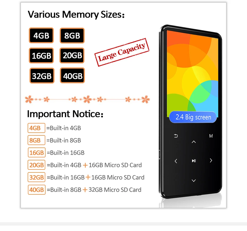 Этот MP3-плеер не только имеет функцию воспроизведения музыки, но также имеет электронную книгу, fm-радио, запись голоса, воспроизведение видео (только формат AVI или AMV), будильник, воспроизведение фотографий, идеально подходит для занятий спортом, бега, путешествий. Примечание: поддерживает воспроизведение видео только в формате AVI или AMV. Для других форматов видео, вы можете использовать видео конвертер, который мы поместили в музыкальный плеер для преобразования. Также мы можем отправить вам видео для руководства. Не стесняйтесь обращаться к нам, если возникнут какие-либо проблемы.