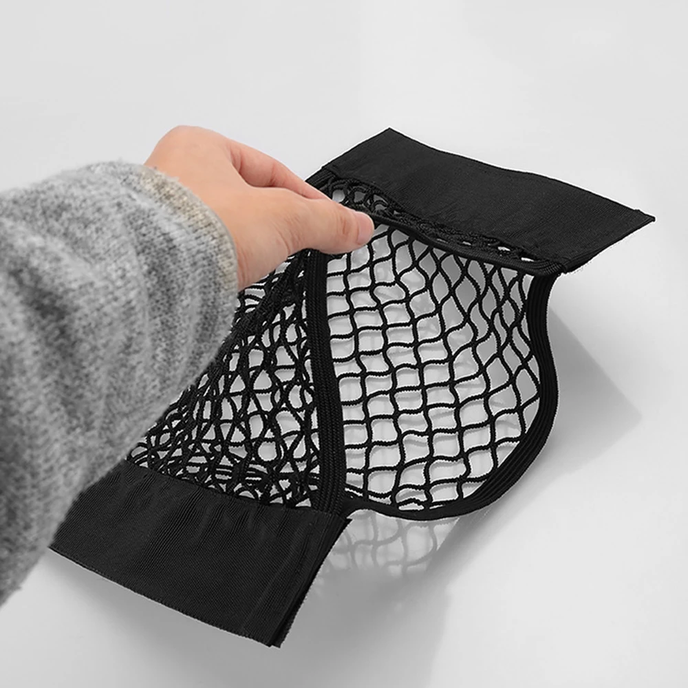 Черный Автомобильный задний багажник на сиденье эластичная сетка Волшебная наклейка Сетчатая Сумка для хранения карманная клетка Авто Органайзер сумка для сиденья