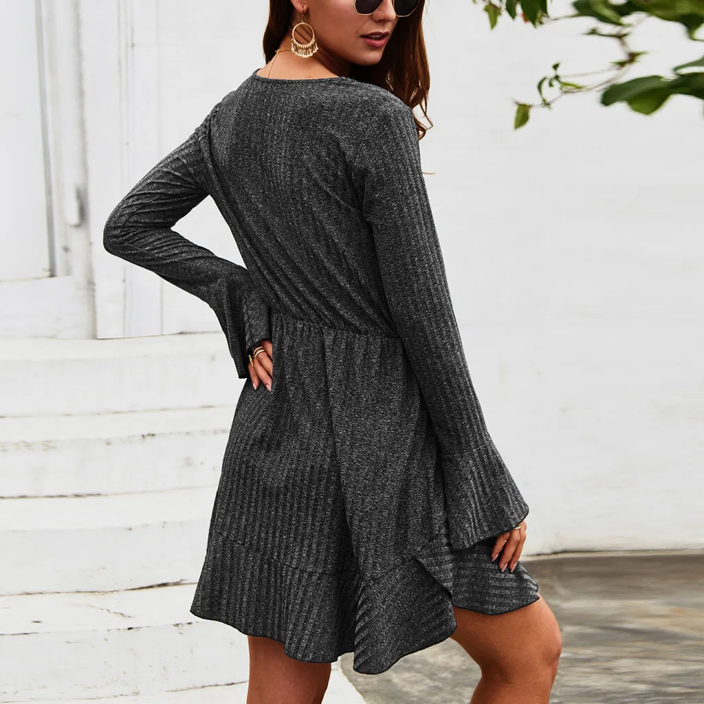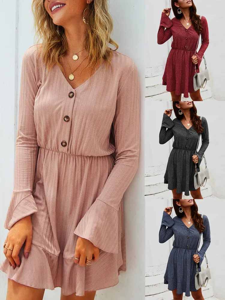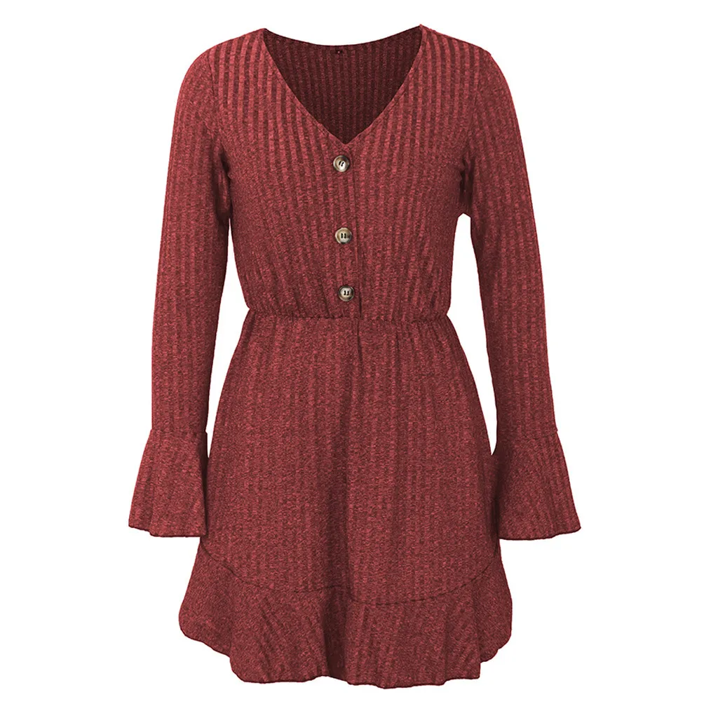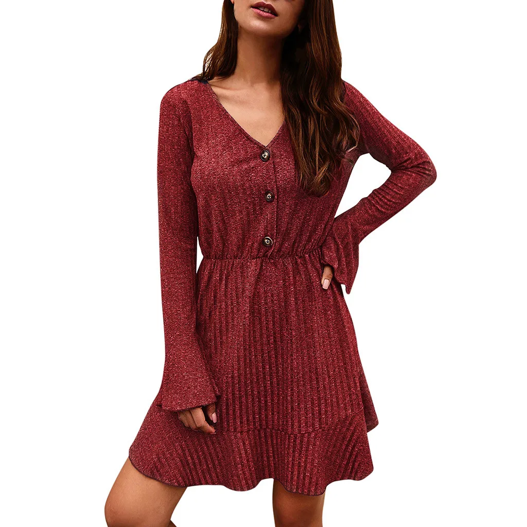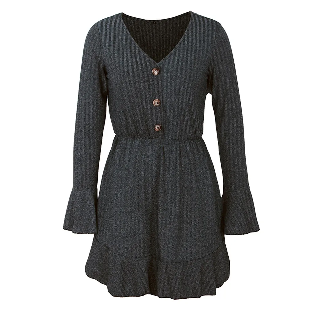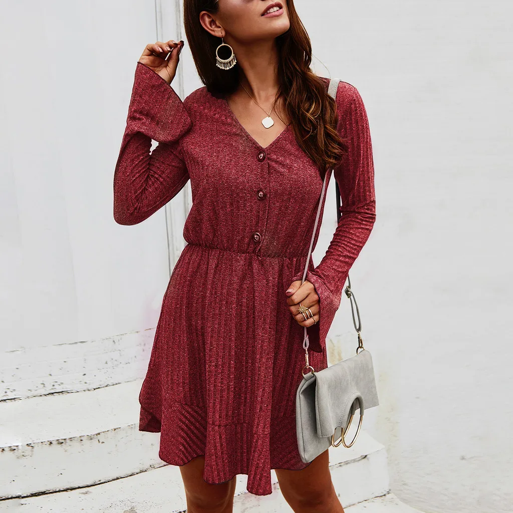 Женские Модные Повседневные Вечерние мини-платья с v-образным вырезом и длинными рукавами на пуговицах