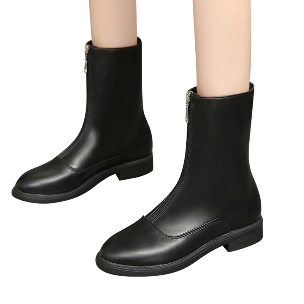 Женские ботильоны на молнии; повседневные короткие ботинки с круглым носком на платформе