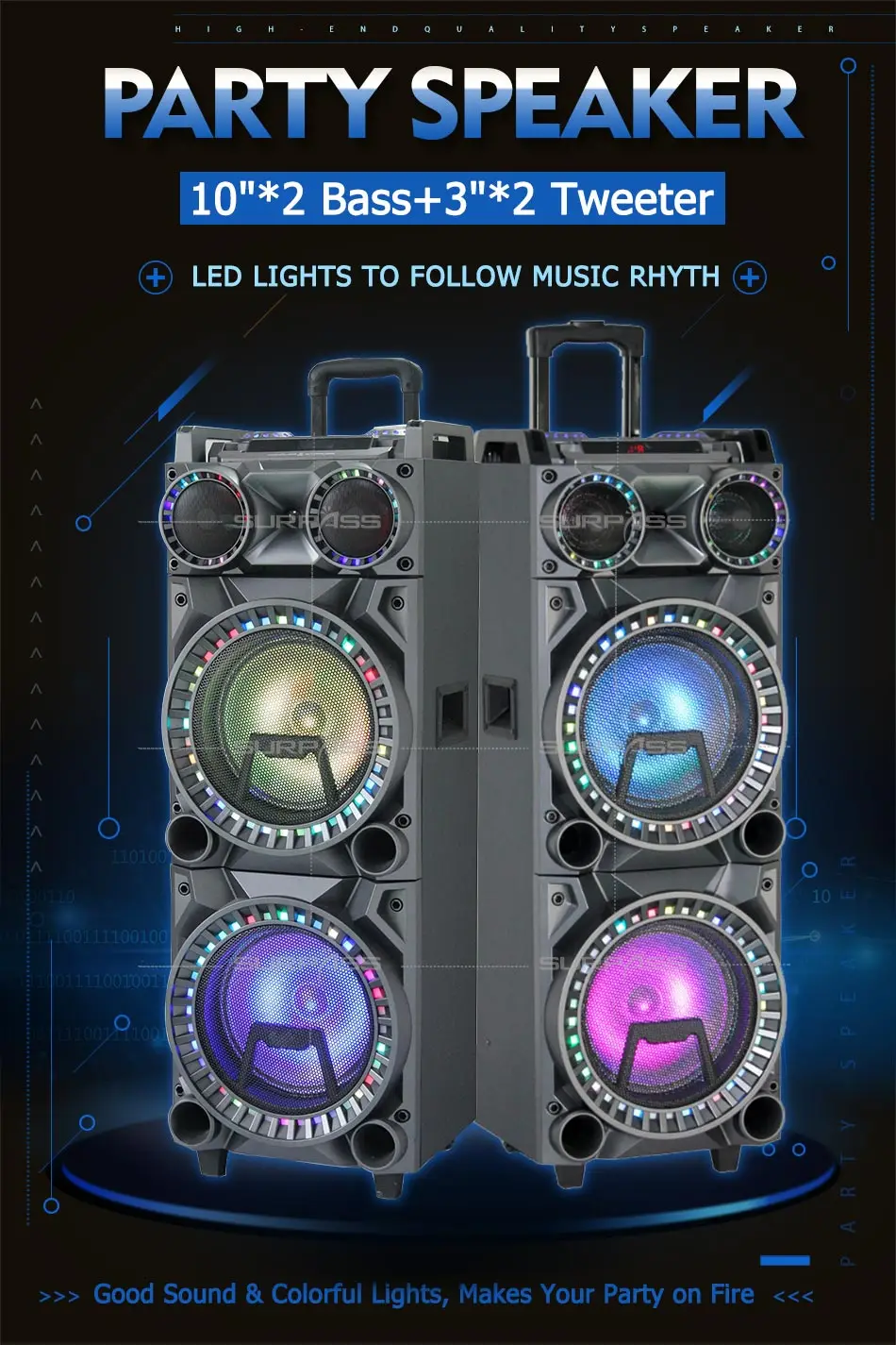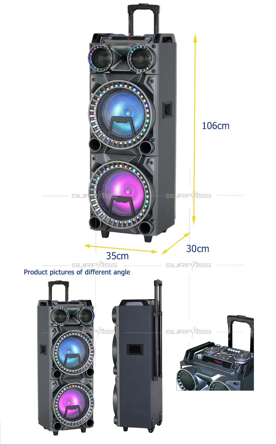 Портативный Bluetooth динамик домашний Cenima караоке мощность Профессиональный звук сабвуфер усилитель двойной 10 дюймов Открытый вечерние Светодиодный светильник: