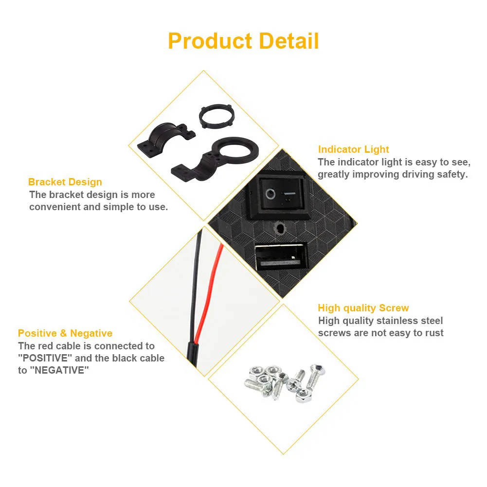 Практичный блок питания-порт питания для мобильных телефонов и GPS с зарядкой от USB мотоцикла 5 В. 100% тестирование перед отправкой для обеспечения идеального продукта, стабильности и долговечности. 100% отличное обслуживание клиентов