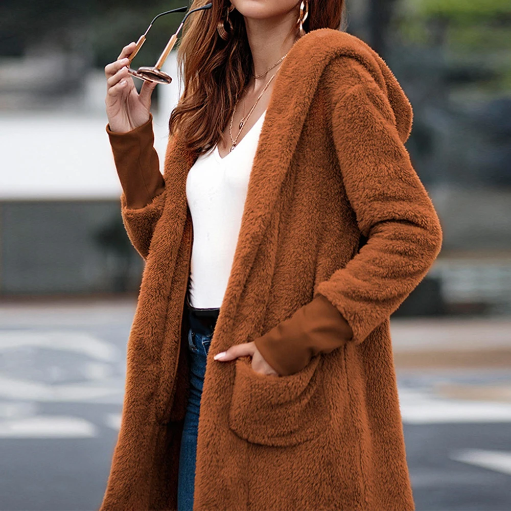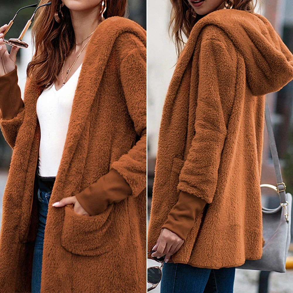 * Описание товара: женское пальто осень зима новый карман с однотонная шляпа с длинным рукавом Мода
