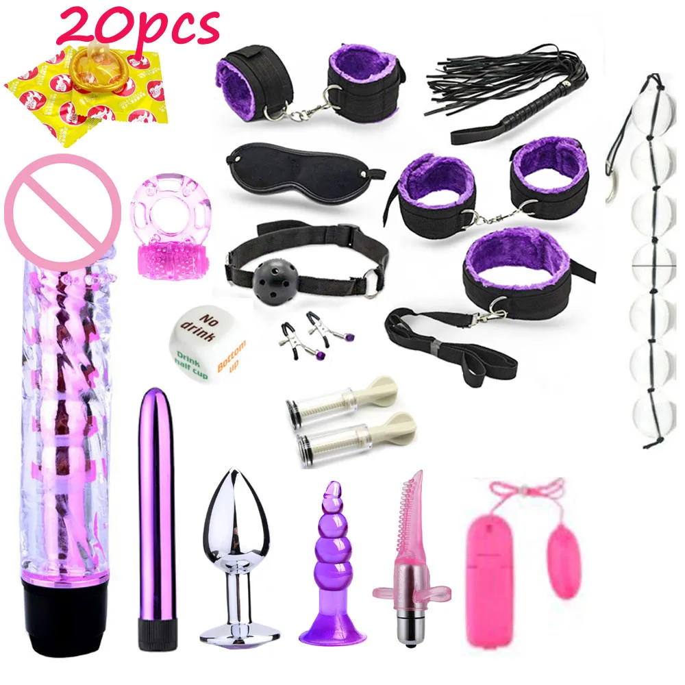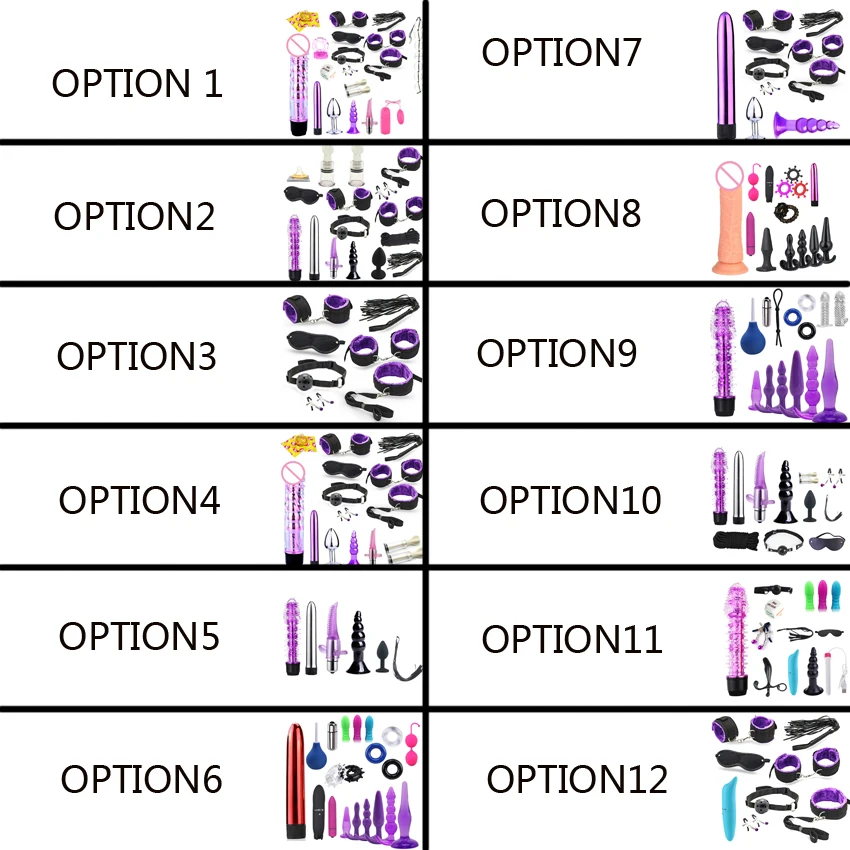 Это набор секс-продукции для взрослых, есть 3 флирта наручники, один сексуальный хлыст, один SM мяч, 1 повязка на глаза, 1 пара молочных зажимов, 6 анальных пробок и 2 молочных насоса, 1 презерватив, 1 любовное яйцо, 1 игральная кость и 1 блокировочное кольцо. Это набор женщин, которые используют качественное изделие из материала, доставляют женщинам больше сексуального удовольствия. С этим товаром, добавьте немного удовольствия, вы можете иметь отличную ночь с вашим партнером. Подходит для пары, которые любят игры SM. Подарите свою лучшую любовь самой дорогой. Попробуйте его.