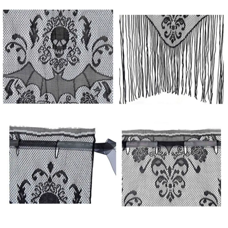 3. Широкое применение: Наша Изысканная кружевная оконная занавеска балдахин является идеальным выбором, чтобы украсить окно вашего дома или дверь в Хэллоуин.