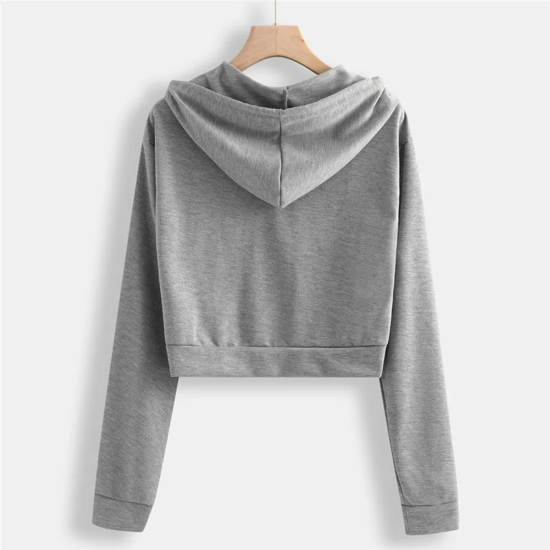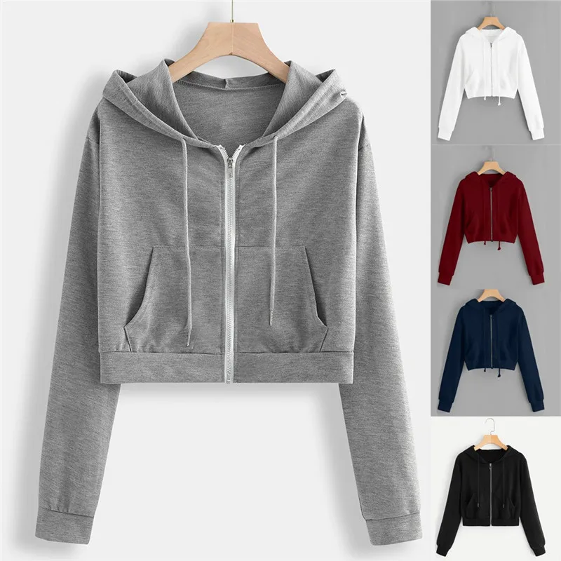 Женская Повседневная Однотонная рубашка с длинным рукавом на молнии и карманом, толстовка с капюшоном, топы