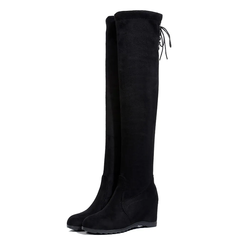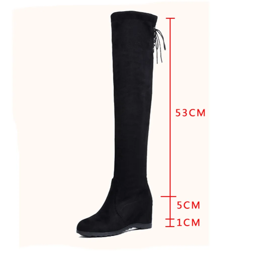 Модные сапоги выше колена; Женские эластичные сапоги на платформе