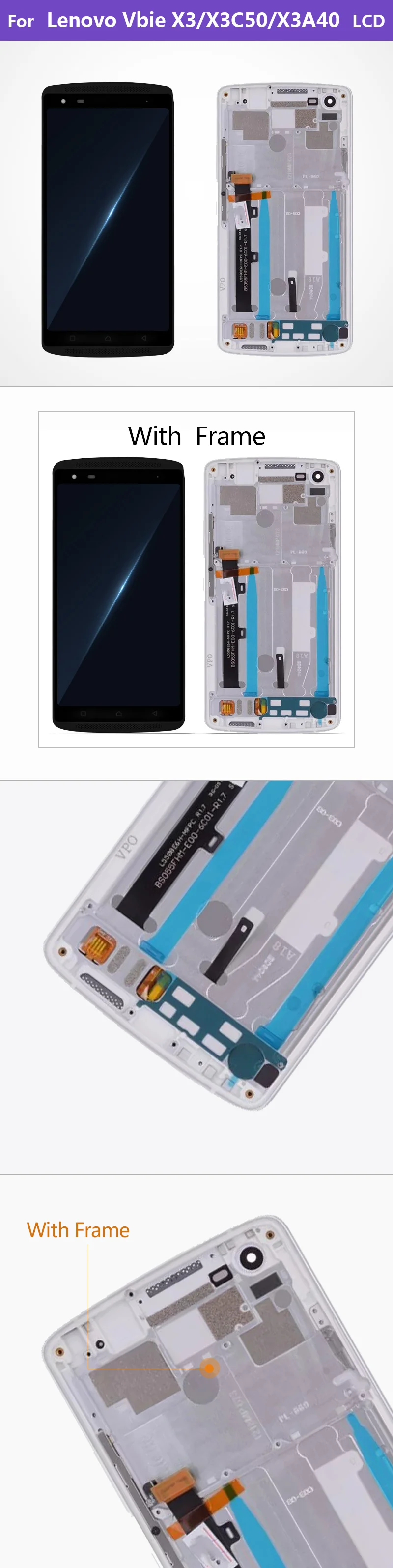 5.5" Original IPS For LENOVO Vibe X3 LCD Display Touch Screen with Frame For Lenovo x3 Display Replacement X3C50 X3C70 X3A40 LCD