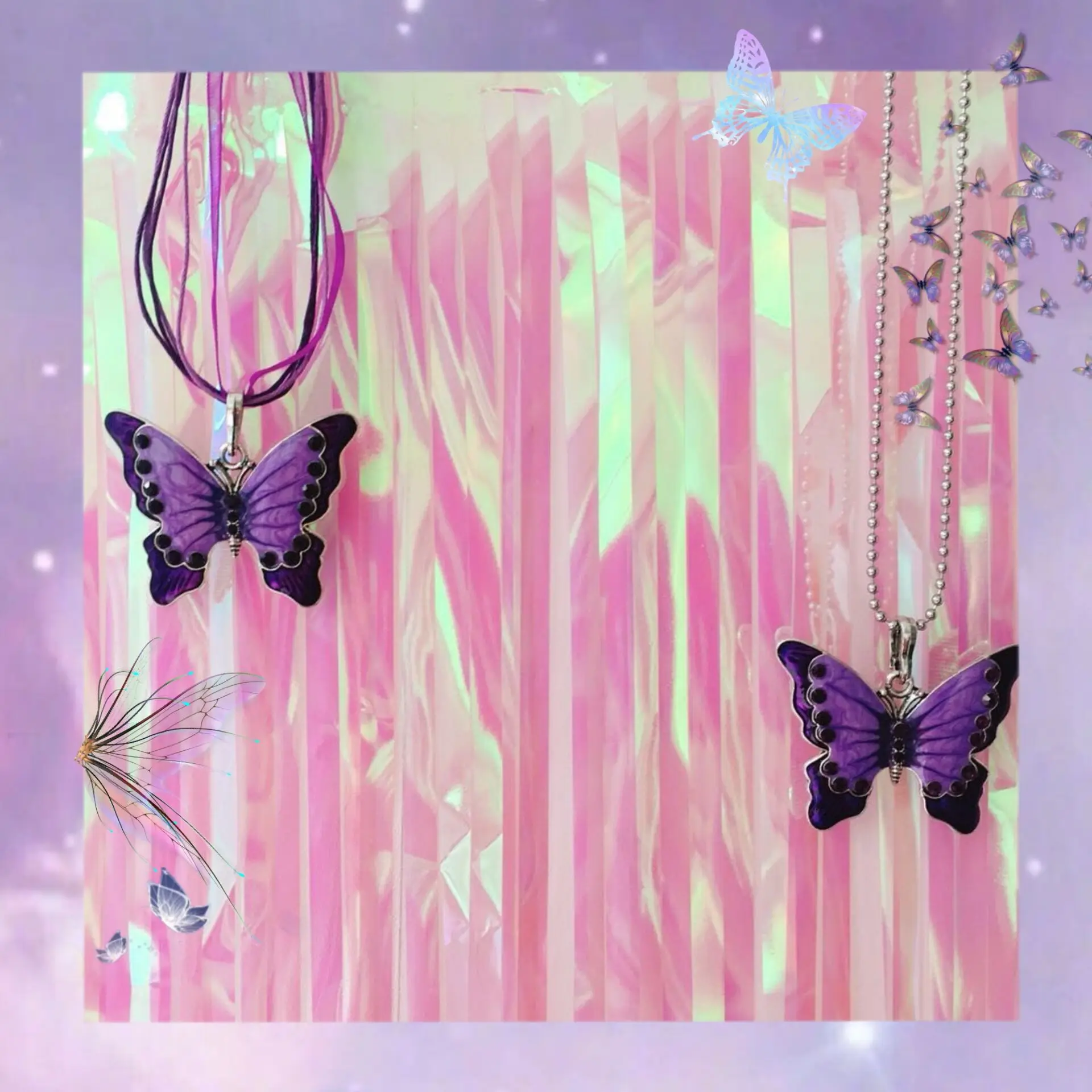 Длина: круглые бусины 50 см, ленты 44 см + удлинение цепочки 7 см