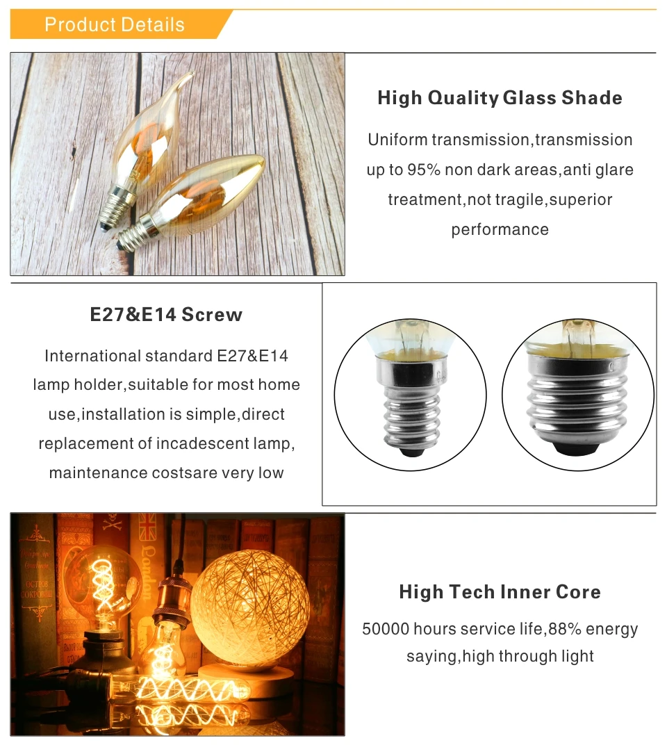 Модель: C35 C35L (E14 базы)/A60 T45 ST64 T185 T225 G80 G95 G125 (E27 базы) спираль светодиодный ламп накаливания