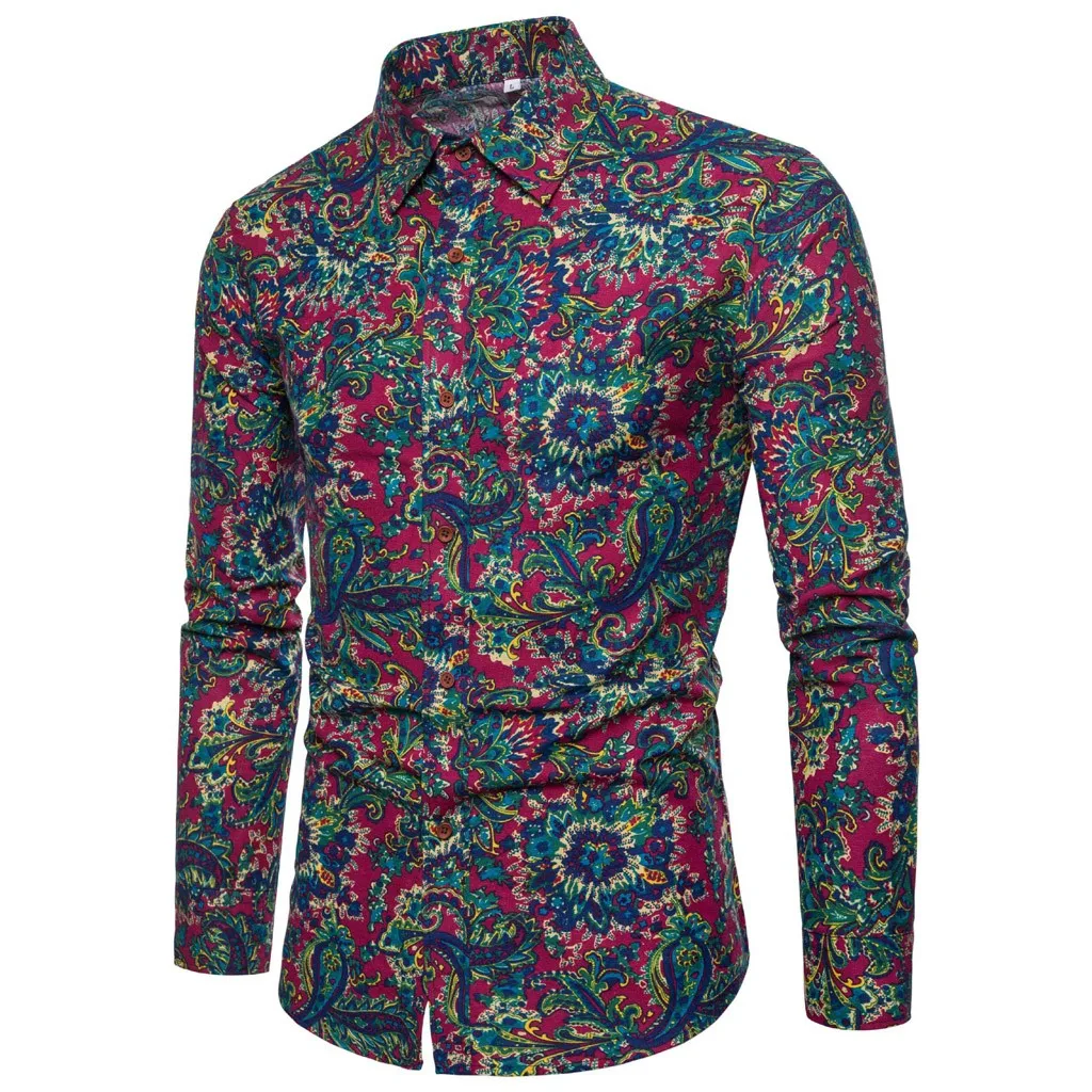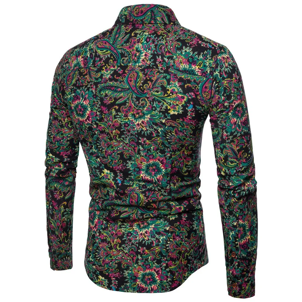 Мужская повседневная винтажная приталенная рубашка с длинным рукавом и принтом