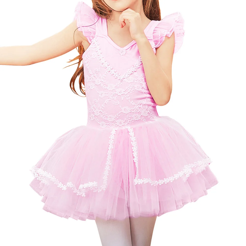 BAOHULU/Для девочек, для балета с юбкой-пачкой платье для выступления без рукавов, тренировочная одежда для занятий гимнастикой из ажурного кружева печати профессиональной балетное платье