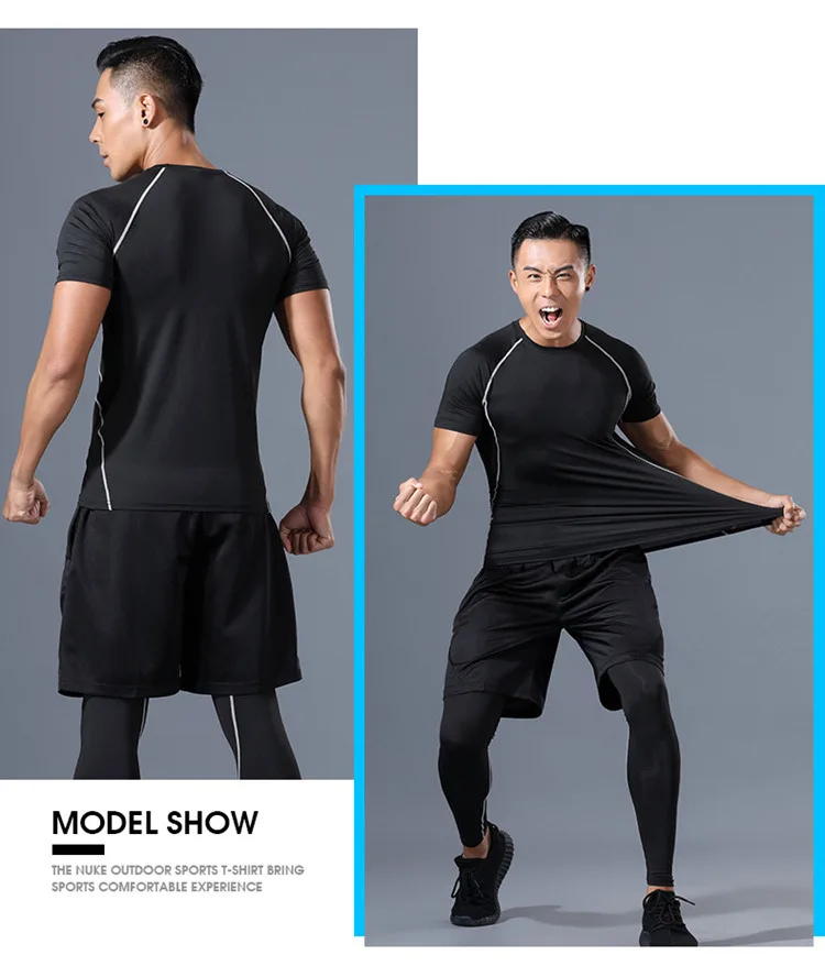 Ткань:Полиэстер 92%-широко используемая спортивная ткань Спандекс 8%-эластичное волокно Функция: Сухая посадка, дышащая, впитывает пот, высокая эластичность; A) :Очень эластичная рубашка демонстрирует сильную фигуру, обеспечивает близкий комфорт,Таблица размеров